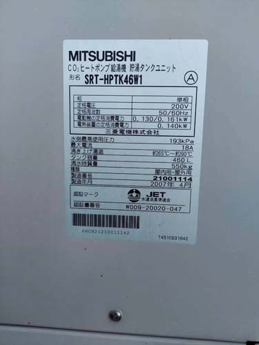 春日部市中央 三菱電機CO2ヒートポンプ給湯機 貯湯タンクユニット SRT-HPTK46W1→コロナ自然冷媒CO2家庭用ヒートポンプ給湯機 ヒートポンプユニットCHP-DZ601K、貯湯ユニットCTU-46AZ1K エコキュート交換工事