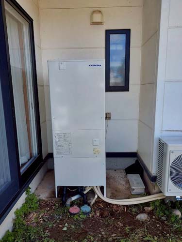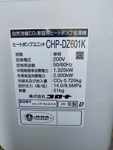春日部市中央 コロナ自然冷媒CO2家庭用ヒートポンプ給湯機 ヒートポンプユニットCHP-DZ601K、貯湯ユニットCTU-46AZ1K エコキュート交換工事